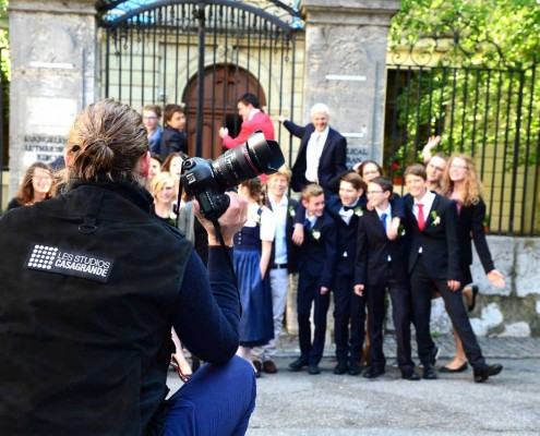 Aujourd’hui Didier et Louis sont les témoins de la confirmation d’une dizaine de jeunes gens au temple de la Madelaine. Par chance, après une semaine plus que maussade, le soleil était au rendez-vous et nous avons commencé par une séance de portraits individuels puis de famille, en extérieur. Les offices religieux sont des moments de recueillement, il s’agit donc pour nous d’être discrets en restant efficaces. Pour finir, moment de joie et de partage à la sortie de l’église, embrassades, accolades, parents et famille fiefs de leurs enfants :