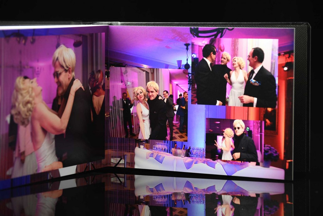 La mise en valeur des photos fait partie intégrante du métier de photographe. Pour aller au delà de l’image numérique « virtuelle », la réalisation d’album artisanaux crée une nouvelle dimension visuelle et physique qui fait toute le différence. Pour cet anniversaire qui avait justement comme sujet « l’Art », la conception de l’objet présentant la sélection de photos a été un vrai plaisir. Le résultat semble avoir plu à notre client qui nous écrit « Je viens de découvrir l’album. Il est magnifique, de même que la boîte, et va trôner sur la table du salon! »